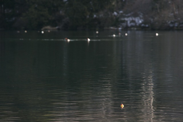 少しづつ凍りはじめた湯ノ湖には、ホシハジロ・ヒドリガモ・オオバン・キンクロハジロ・スズガモ・カワアイサ・カワウ・アオサギなどいつもの面々。