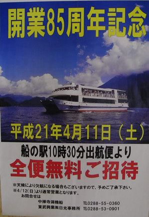 来週の土曜日は中禅寺湖機船がタダで乗れる!!! "8(≧▽≦)8゛