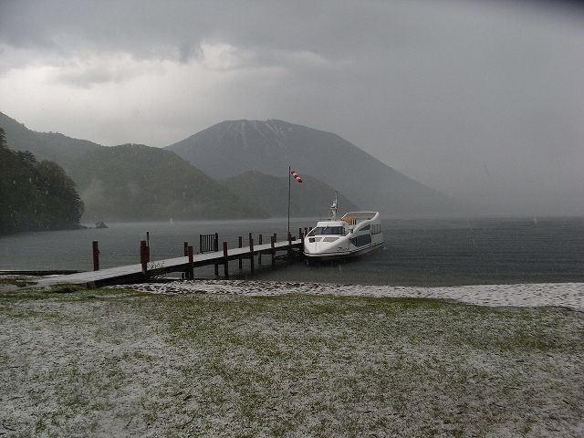 拡大画像を見ると、空から落ちる雹の姿が判るはず。