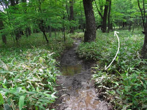 でないと、どんどん笹が踏まれて、ぬかるみが広がってしまうもの。
