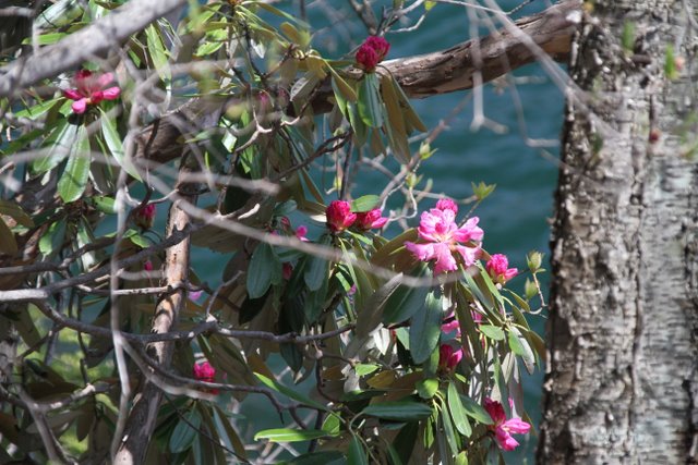 まさに咲かんとするアズマシャクナゲの蕾の赤がなんと鮮やかな事!