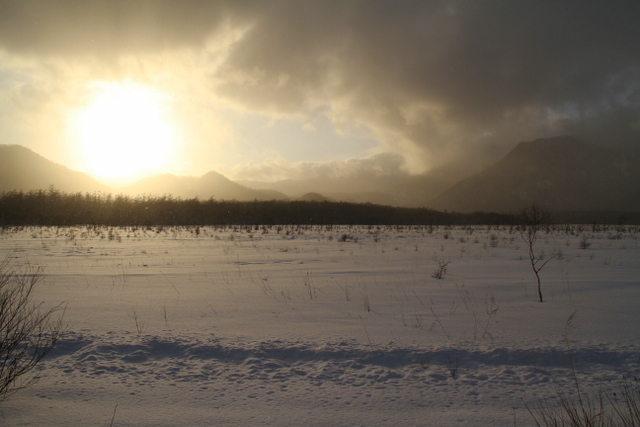 で、夕方戦場ヶ原を走っていたら、新しい雪が夕日に照らされてオレンジに染まり、なんとも美しい。