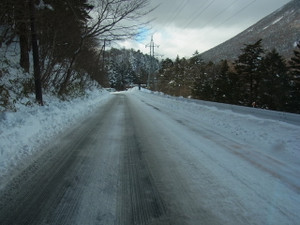 竜頭滝付近まで来ると路面の雪が多くなり、