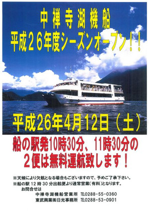 明日は中禅寺湖機船の運行再開日。