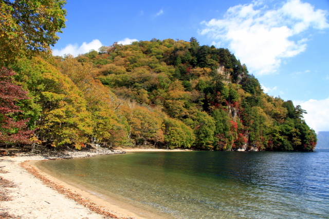 10/10 湯ノ湖兎島。 紅葉十一分。盛り過ぎ。