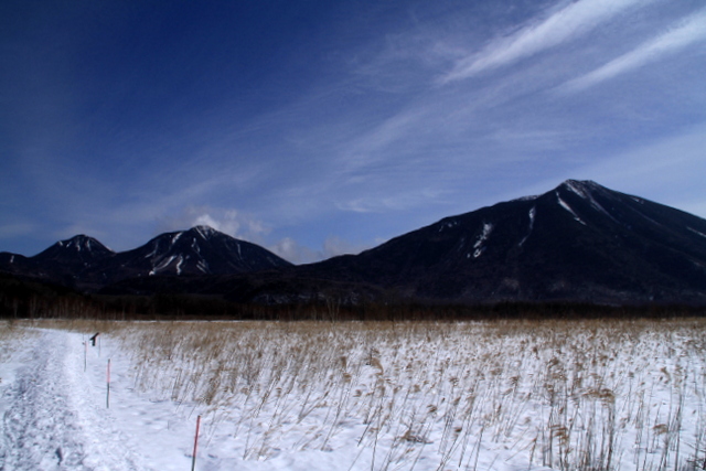 午後から雨予報だわ、トレースも固まっていたわで、ツボ足のままスタスタ小田代へ。