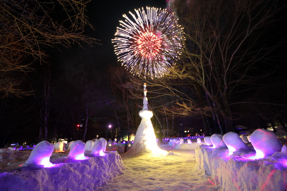 会場の足元には、無数の雪蛍が乱舞して、今年のテーマ「絵本の世界」に迷い込んだかのよう。