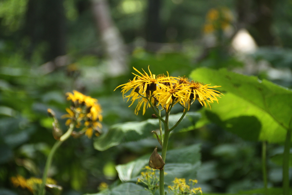 千手ヶ浜ではマルバダケブキが咲き始め。