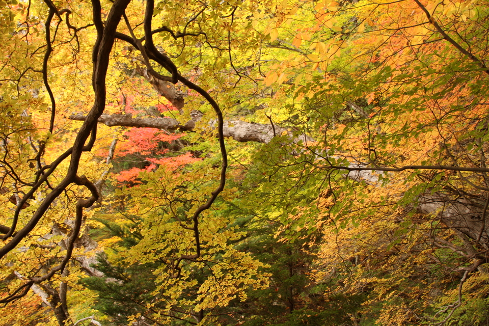 いち早く色づく赤岩周辺も赤や黄色に色とりどり。
